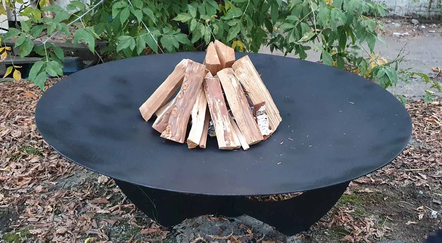 Диаметр костровой чаши 92 сантиметра, глубина чаши 10 сантиметров, толщина метала 6 миллиметров. Материал изготовления - конструкционная сталь марки Ст3.