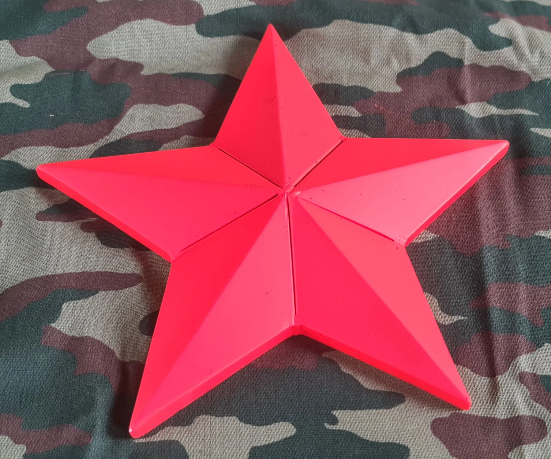 Предлагается к поставке красная звезда на памятник. Звезда изготавливается из нержавеющей стали с последующим окрашиванием изделия в красный цвет. С тыльной стороны звезды имеются отверстия для крепежа изделия на тело обелиска. Толщина стенок изделия от 1 до 3 мм. Диаметр звезды согласовывается с заказчиком, он может быть разным, от маленького 100 – 150 мм., до огромного 1500 мм. Звезда на памятник рассчитана для эксплуатации в любых климатических условиях. Изготавливается звезда на заказ в любом оттенке красного цвета.